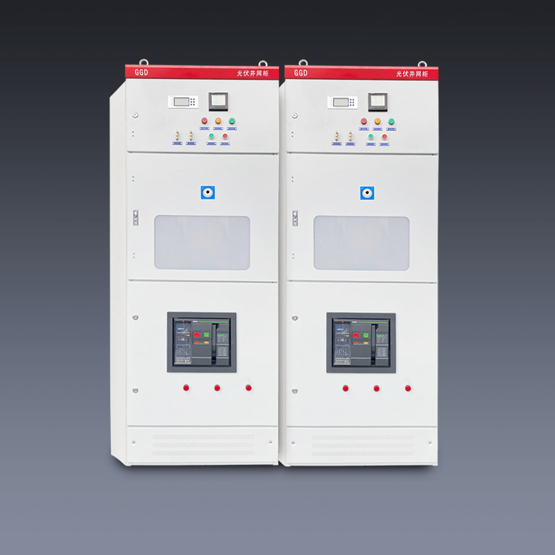 主要用于交流400V低壓系統的分布式光伏發電項目,低壓光伏并網柜主要有防孤島保護裝置(還可加裝故障解列裝置、電能質量在線監測裝置)、隔離刀開關、并網斷路器、防雷器、溫濕度控制器、電能計量裝置和柜體等組成。柜型及柜體尺寸根據現場情況定做為MNS,GCS,GCK,GGD這幾種。